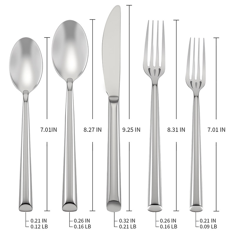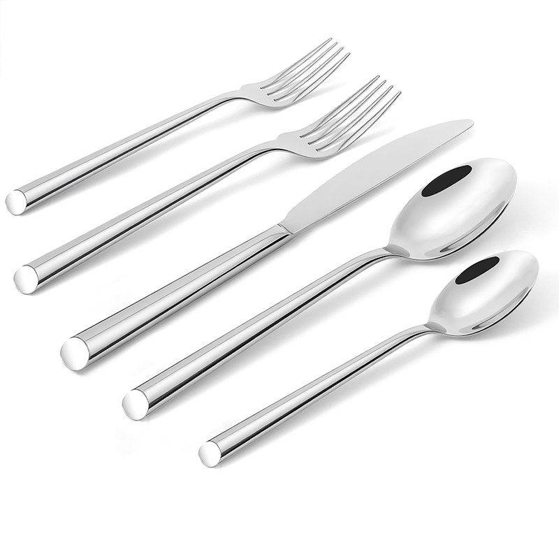 Modern American Style 5 Pcs Stainless Steel Flatware Set with Durable Handles Silver