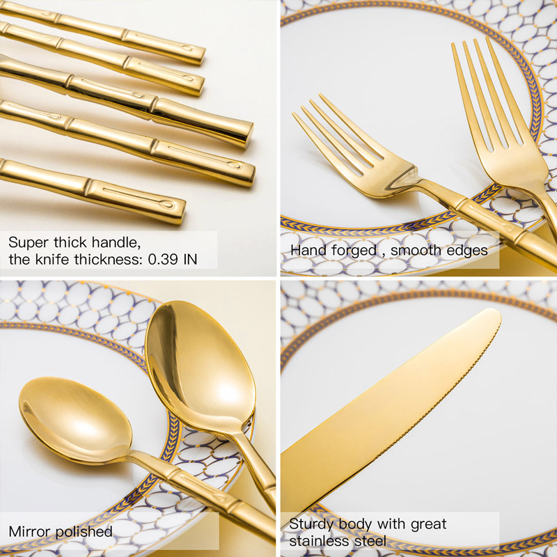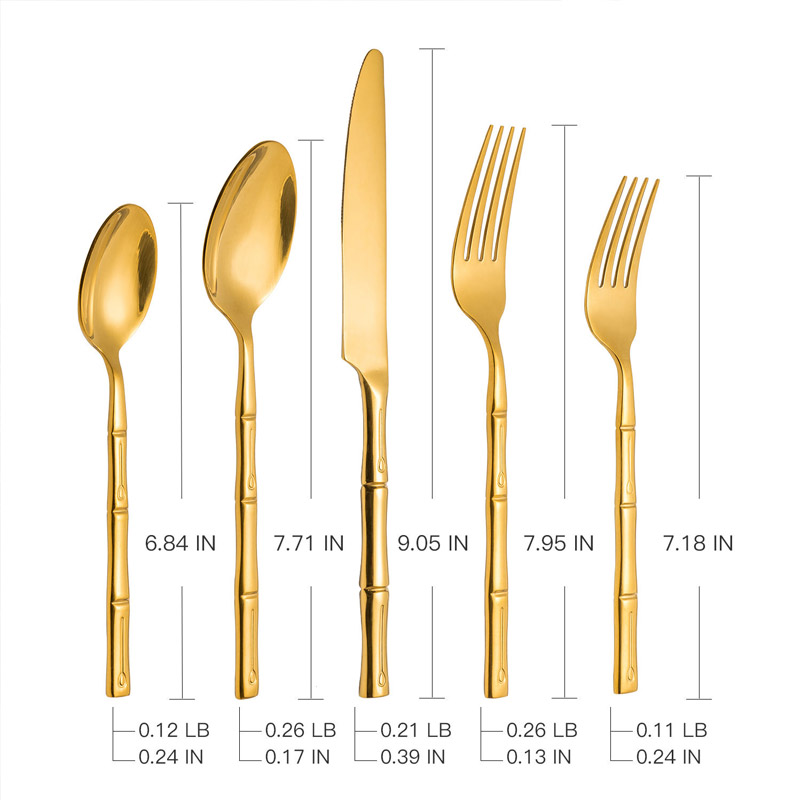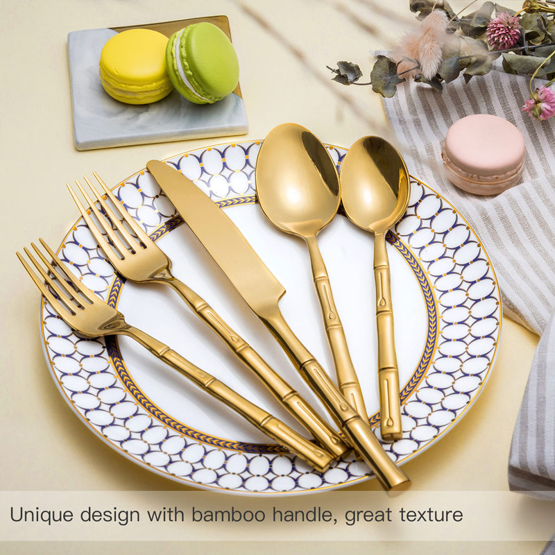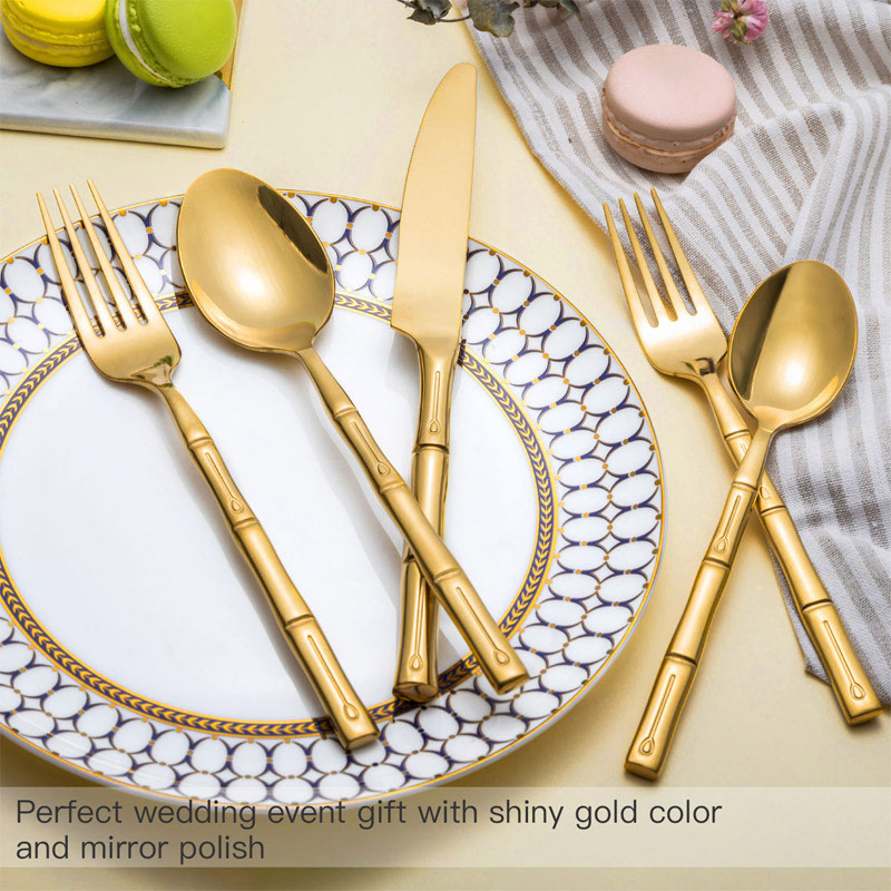 Stainless Steel Bamboo Gold Cutlery for Wedding Event